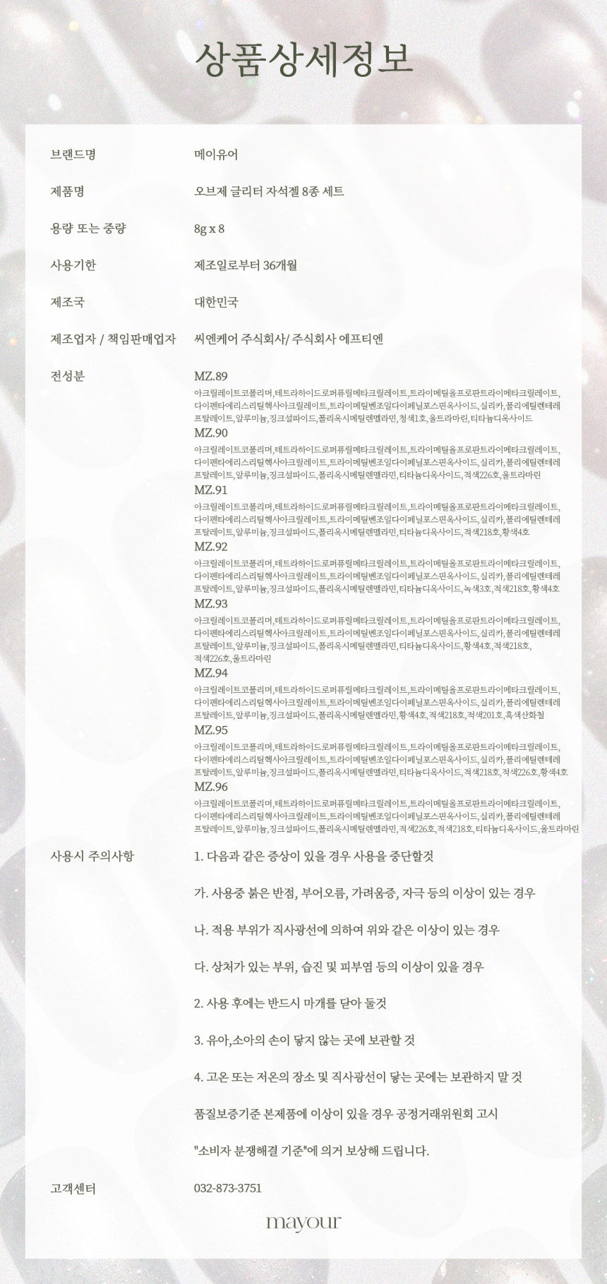 【Mayour】Objet Glitter Magnet Gel 8-piece set